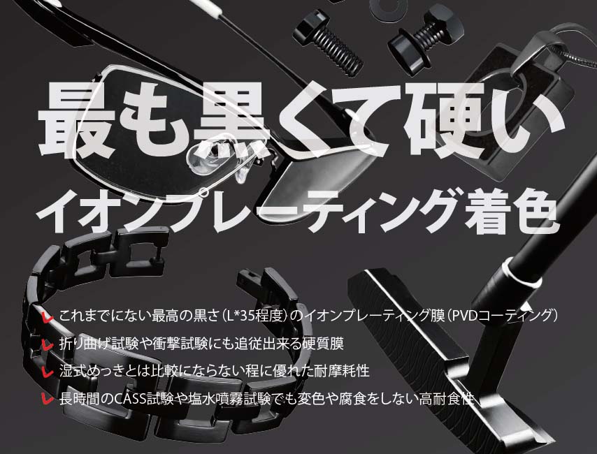 新導入PVD機によって、最も黒いイオンプレーティング膜加工が可能になりました。